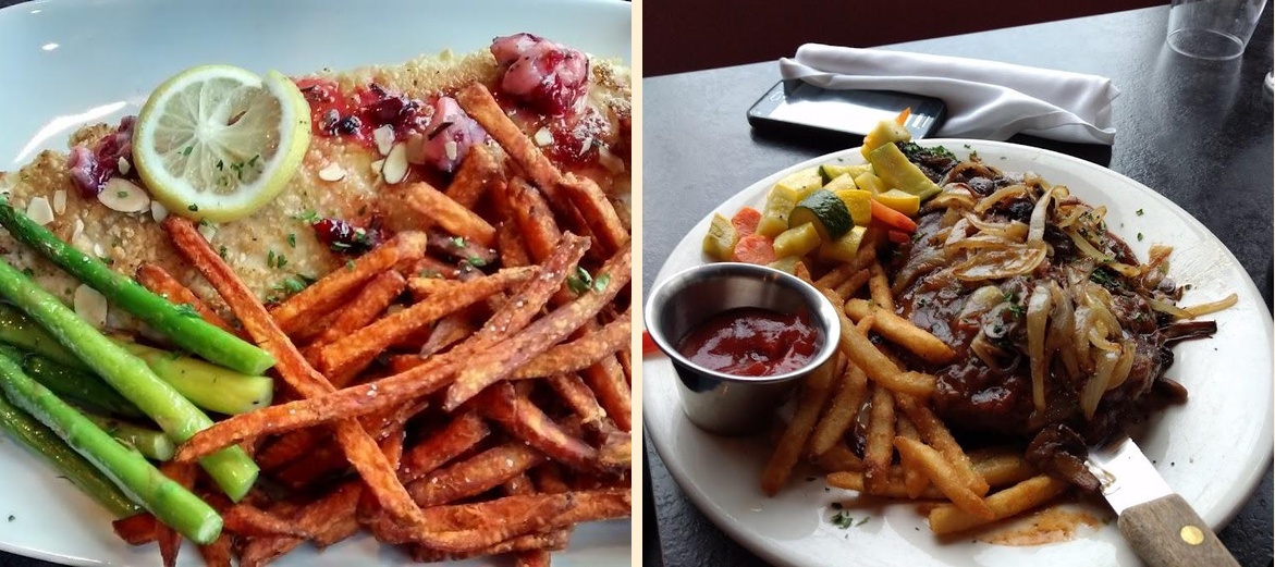 Bonfire offers a diverse menu featuring grilled dishes, burgers, sandwiches, salads, and delicious pastas. The selection includes unique items like Duck and Elk Burgers.